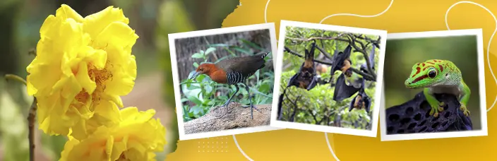 Mammals and reptiles: Andaman Water Monitor, Narcondam Small Flying Fox, Nicobar Flying Fox,