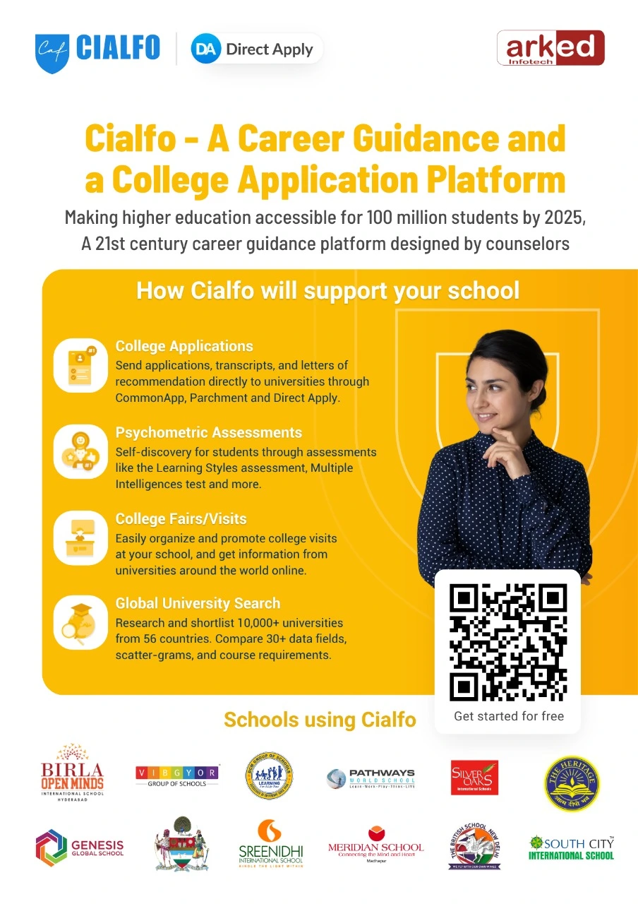 We at Arked Infotech, with years of experience in the education sector, have very well understood these plights faced by students. Arked Infotech is an education based company that provides one-stop academic solutions to students. Now, in association with Cialfo, Arked Infotech is offering counselling platform to enable students to make right career decision. We link students with experienced counsellors who can guide them through the process of navigating, selecting and applying to right universities and colleges across the world.
