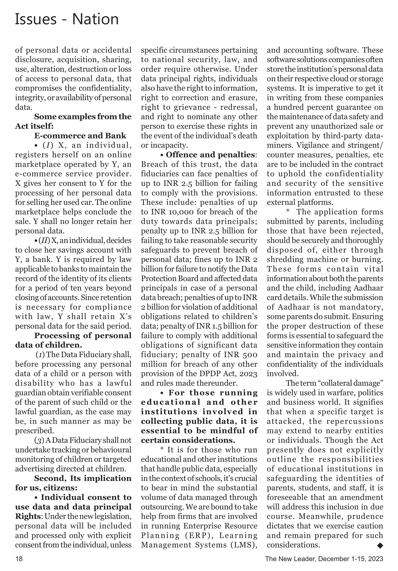 The Digital Personal Data Protection Act Of 2023 In India: Its Implications For Educational Institutions